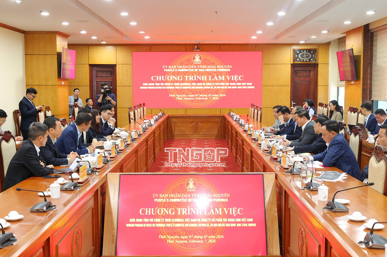[CMH Group] Ngày 7/02/2026, tại văn phòng UBND tỉnh Thái Nguyên, đoàn lãnh đạo CMH Group do ông Phạm Minh Phúc – Chủ tịch HĐQT làm trưởng đoàn đã có buổi làm việc quan trọng với lãnh đạo UBND tỉnh dưới sự chủ trì của ông Vương Quốc Tuấn – Ủy viên Ban Chấp hành Trung ương Đảng, Phó Bí thư Tỉnh ủy, Chủ tịch UBND tỉnh. Tham dự buổi làm việc còn có ông Nguyễn Linh, Ủy viên Ban Thường vụ Tỉnh ủy, Phó Chủ tịch UBND tỉnh và lãnh đạo các sở, ban, ngành và các đơn vị liên quan.